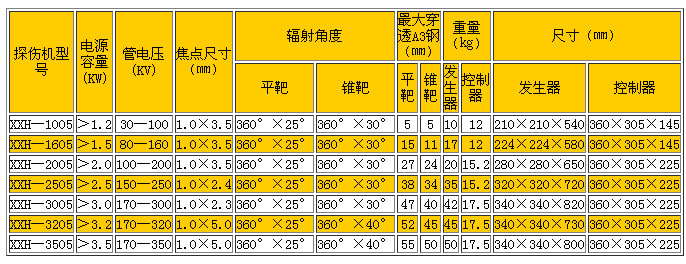 XXH—1005、1605、2005、2505、3005、3205、3505適合對小管徑環行焊縫進行無損檢測,一次曝光完成一周焊縫檢測,大大減輕操作者的勞動強度。